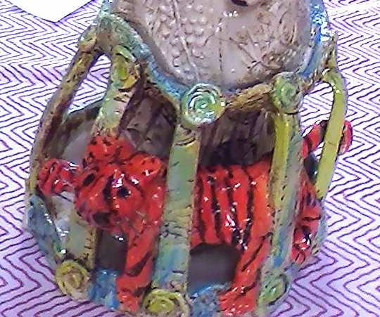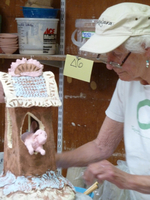 Cost of materials/ firings @ .08 per cubic inch, for most items, measured after high fire. Includes clays/glazes/bisque and glaze fire energy and labor associated with all.